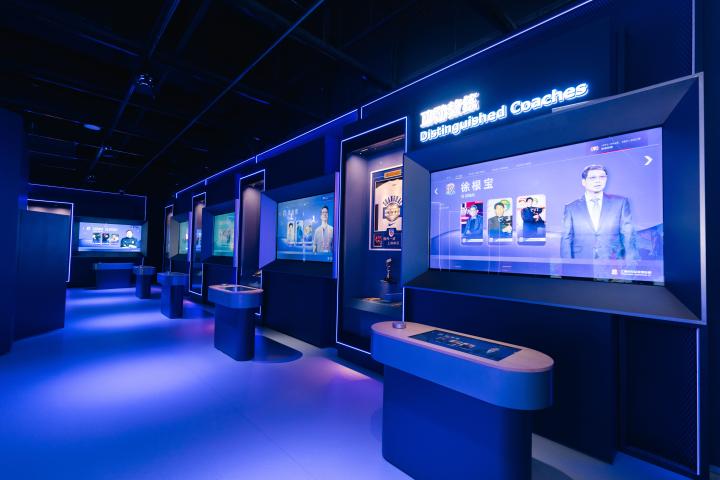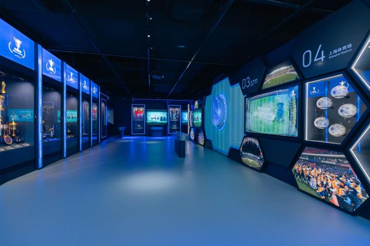 申花中心由三大功能板块组成,给访客提供沉浸式足球文化体验。申花文化体验中心是灵魂所在,有50米长的“申花之路”互动长廊、360度环幕的“巅峰时刻”影厅,还有结合红外感应和体感技术的“群星闪耀”和“功勋教练”互动展区,用科技手段把申花三十多年的历史变成可触摸、可交互的生动故事。还有“第十二人”球迷文化展区,展示俱乐部和球迷的深厚情感。