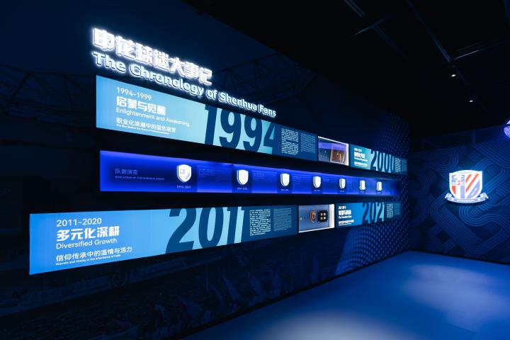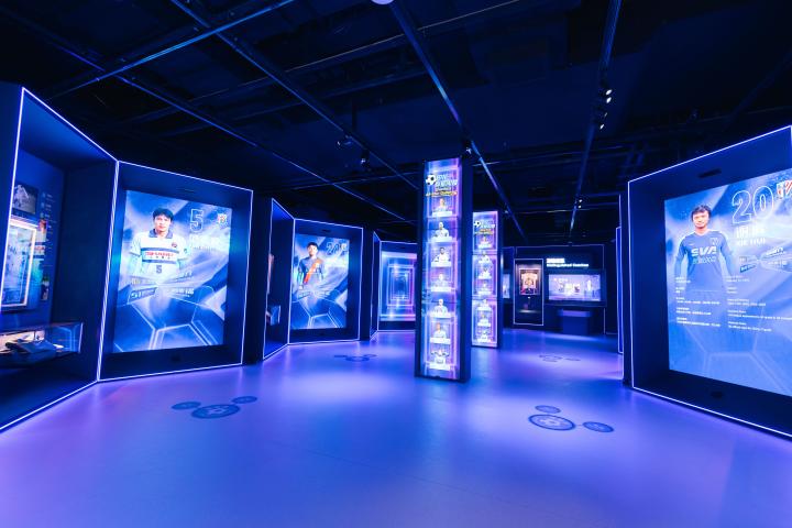 这个超2000平方米的申花中心,不只是展示申花队史和文化的地方,还是体育、文旅、商业、展览融合的创新探索。它秉持“可参与、可互动、可带走记忆”的理念,打破传统体育场馆的限制,打造一个365天都运营的城市体育文化新地标。